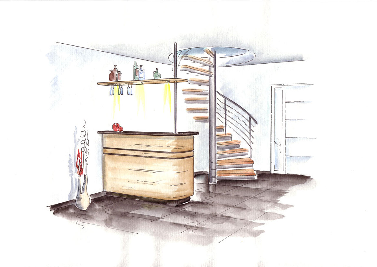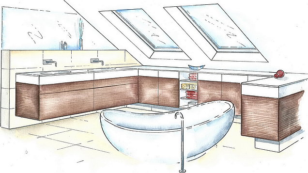 Sollte Ihnen Ihre Entscheidung schwer fallen, weil Sie sich noch kein genaues Bild von dem geplanten Projekt machen können, helfen wir Ihnen auch hierbei gerne. Wir bieten Ihnen mit Unterstützung unseres Zeichners die Möglichkeit, an Hand von Fotos und Skizzen das geplante Projekt perspektivisch, in Aquarelltechnik coloriert, darzustellen. Für diesen Service berechnen wir einen Kostenbeitrag, der Ihnen bei Ausführung des Projekts selbstverständlich gutgeschrieben wird.