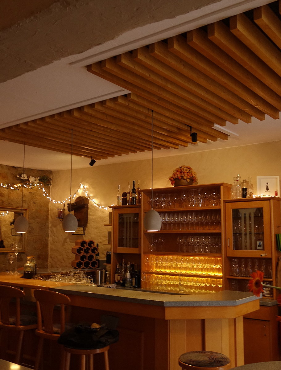 (www.johannishof.eu ). Nachdem über viele Jahre immer wieder die Raumakustik im Gastraum des Johannishof von Gästen und Mitarbeitern, bemängelt wurde, konnte in den neuen Gasträumen dieses Problem konsequent angegangen werden.