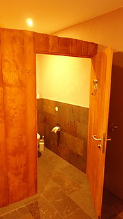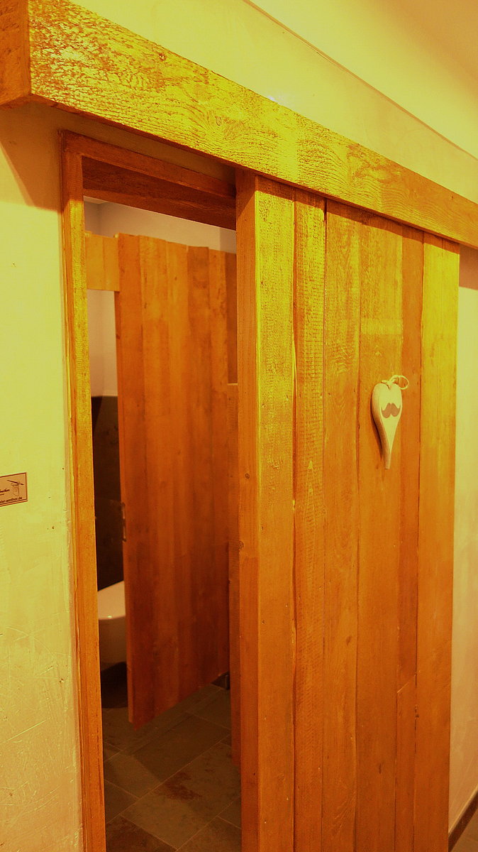 noch vor etwa 50 Jahren wurden hier die Schweine gefüttert, die Machart der WCs soll zumindest im Ansatz an einen Schweinestall erinnern.