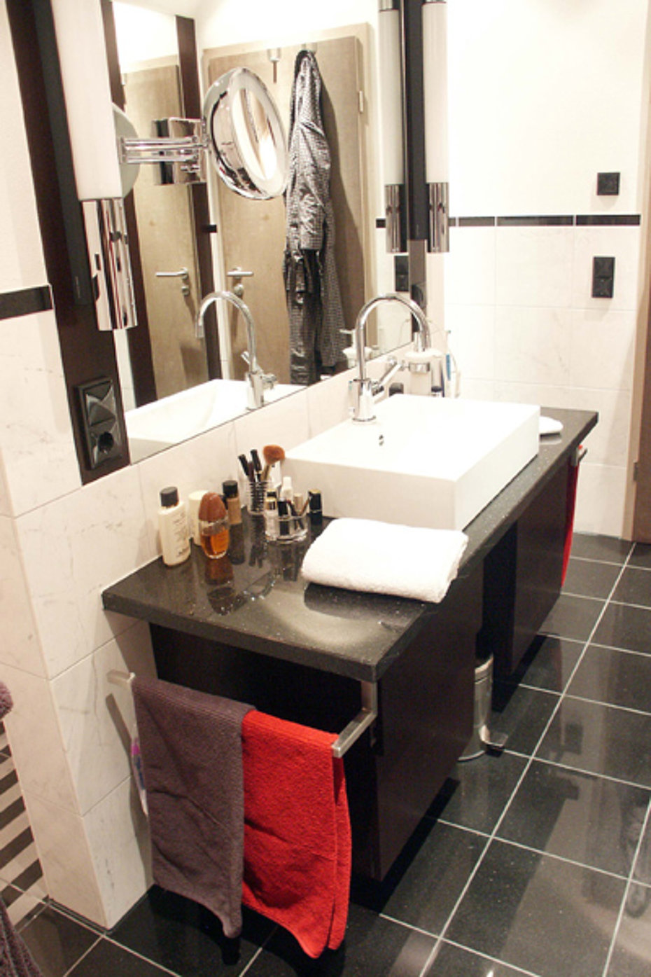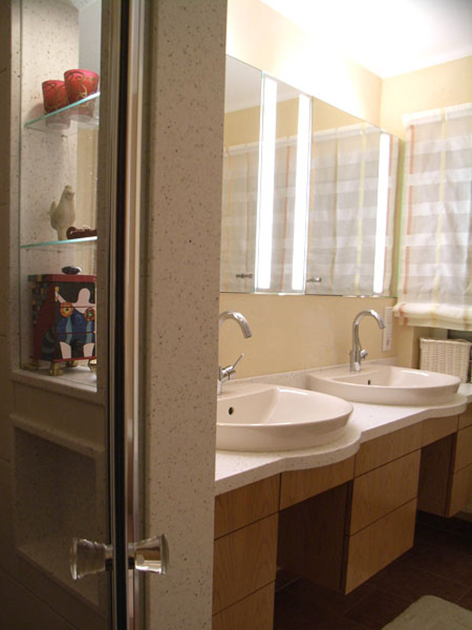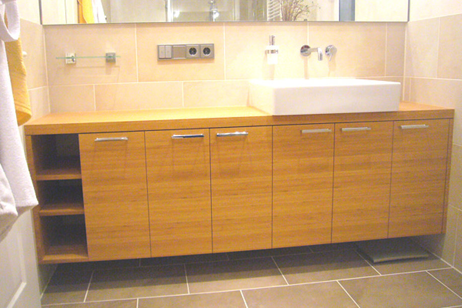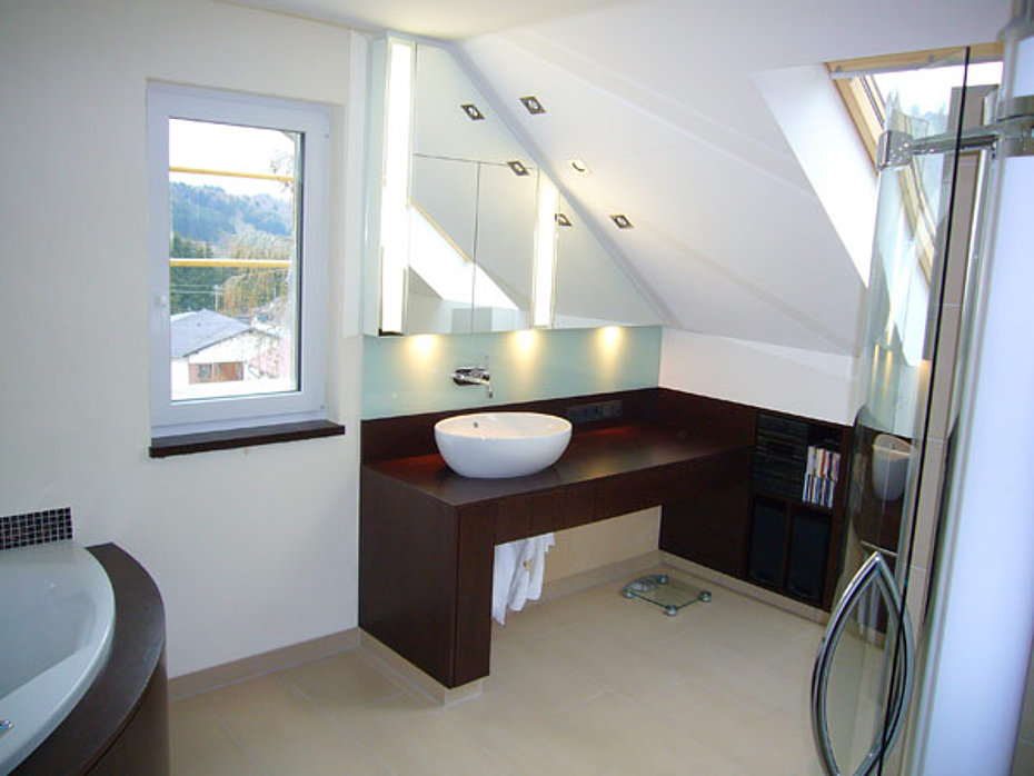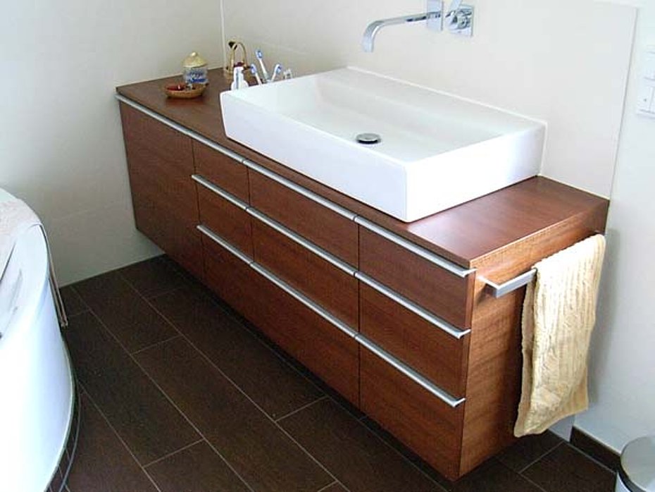 Auch die Möblierung von Bädern ist eigentlich heute eine Selbstverständlichkeit. Widersprüchlich zu dieser Entwicklung allerdings ist unsere Beobachtung nach, dass die Badplanung in der Regel ohne Berücksichtigung des Möbelbedarfs stattfindet, ganz unter dem Motto „ der Schreiner baut uns schon etwas drumrum."