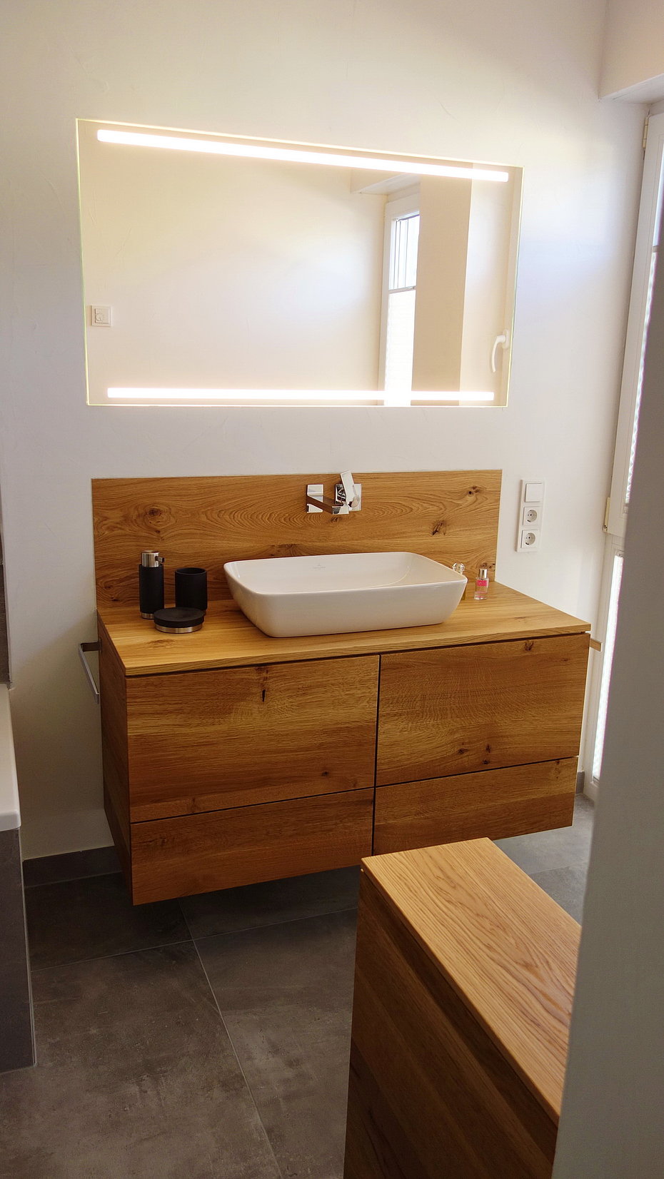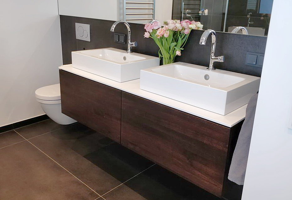Diese Versäumnisse beschränken einen später sehr in den Gestaltungsmöglichkeiten. Enge Zusammenarbeit zwischen Sanitärbetrieb und Schreinerei ist daher für uns im Vorfeld sehr wichtig.