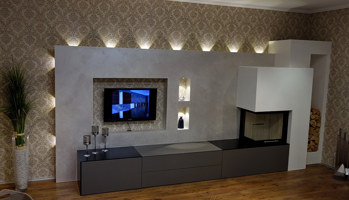 Diese Wohnwand ist das Ergebnis einer Cooperation von Kaminofen Wittrock, Schreinerei Jung und Krieger, Malermeister Amthor, sowie Planer Alexander Mäling.